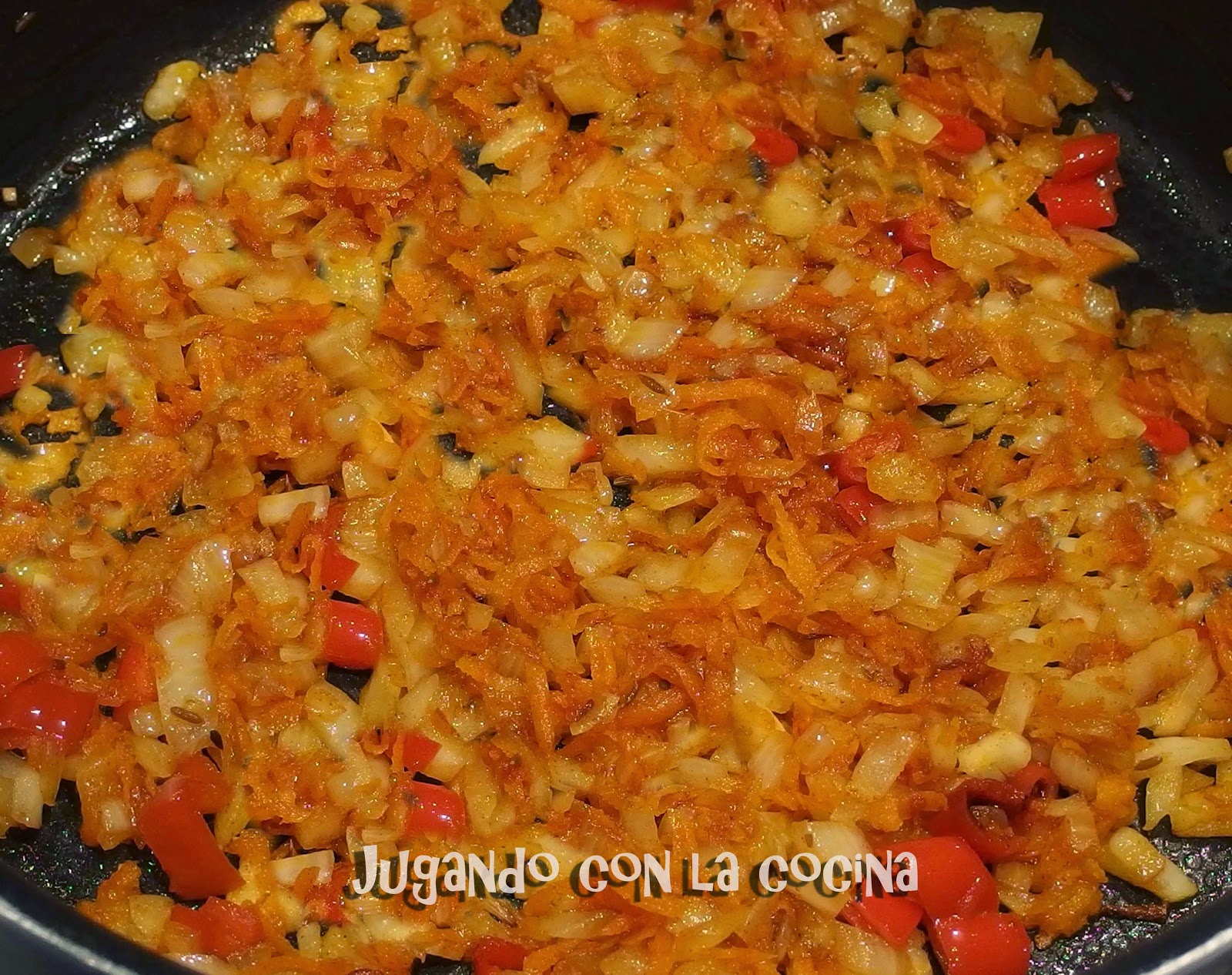 En una cazuela se pone el aceite de oliva virgen, se doran primero la zanahoria que habremos rallado primero para que se haga antes, cuando empiece a ponerse blanda agregamos los ajos y la cebolla. Esperamos a que se dore todo e incorporamos las lentejas y las especias, le damos un par de vueltas y agregamos el caldo. Dejamos cocer unos 20-25  minutos vigilando para que no se sequen, cuando el caldo se consuma le vamos añadiendo agua hasta que queden blandas.