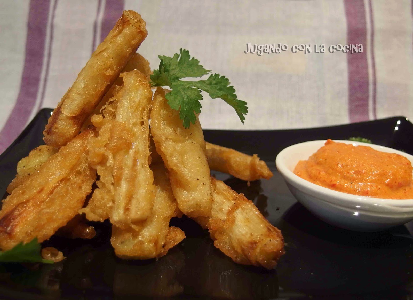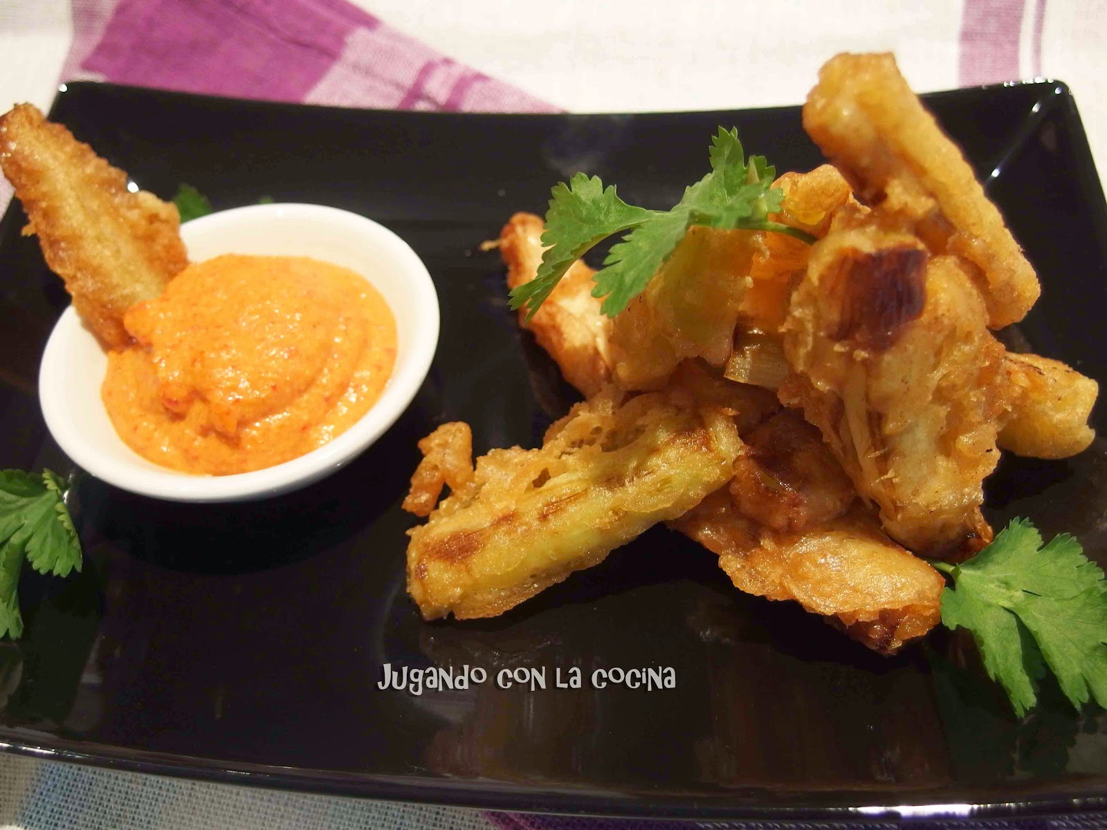 Evidentemente en casa no se pueden hacer así, pero hay alternativas que son bastante dignas, como cocinarlos en el horno, etc... o rebozados en tempura que es la que os propongo, es rápida, puedes disfrutar de su sabor y están deliciosos con la salsa Romesco,