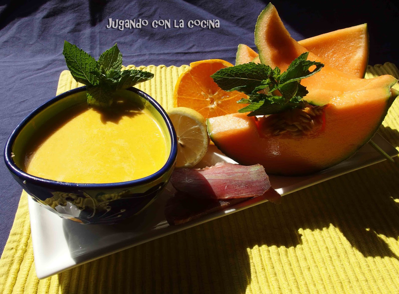 El melón Cantaloupe, en francés, cuyo nombre proviene del pueblo italiano, Cantalupo, es muy dulce y tiene un color muy llamativo, por lo que la presentación de esta sopa resulta muy apetecible.