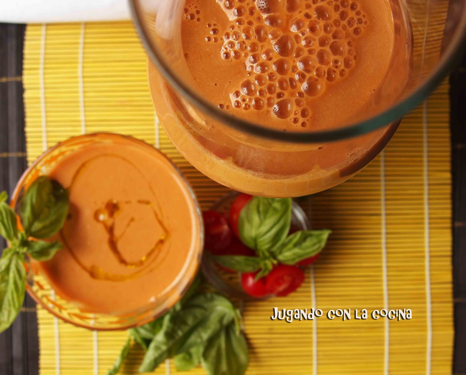 La preparación base se parece al salmorejo cordobés, pero ésta no lleva tanto pan. Es una sopa muy agradecida, muy sencilla de hacer, más que rápida, triturar y listo, además resulta un entrante muy ligero, bajo en grasas, con muy pocas calorías y muy sano.