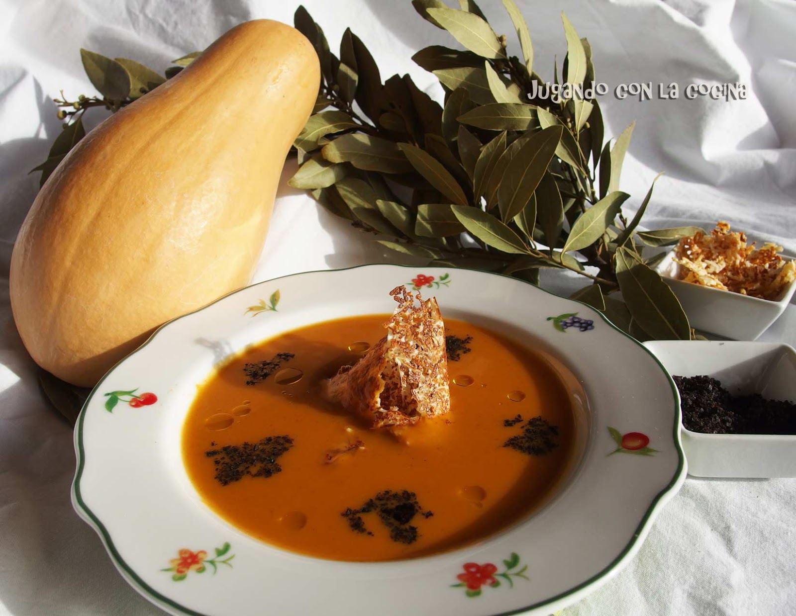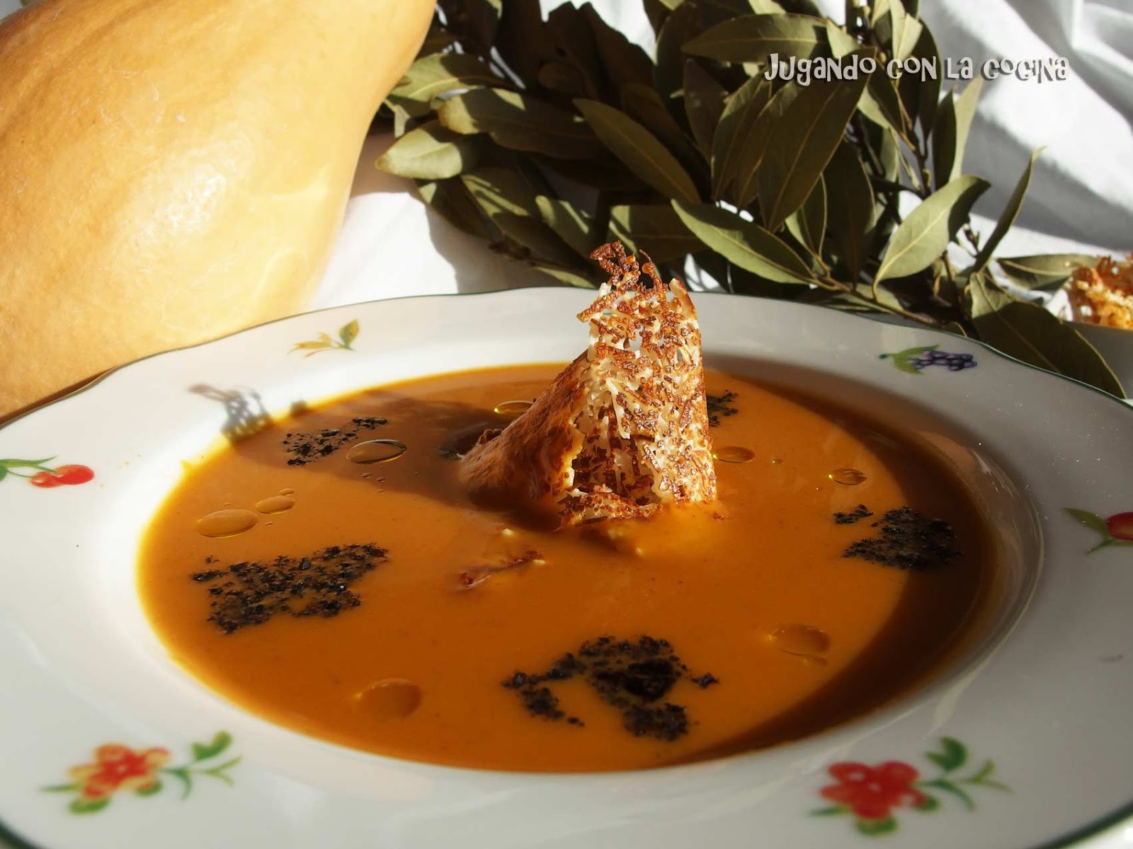 Podemos servirla tal cual con un chorrito de aceite de oliva virgen extra por encima o agregar el crujiente de queso y el polvo de aceitunas negras.