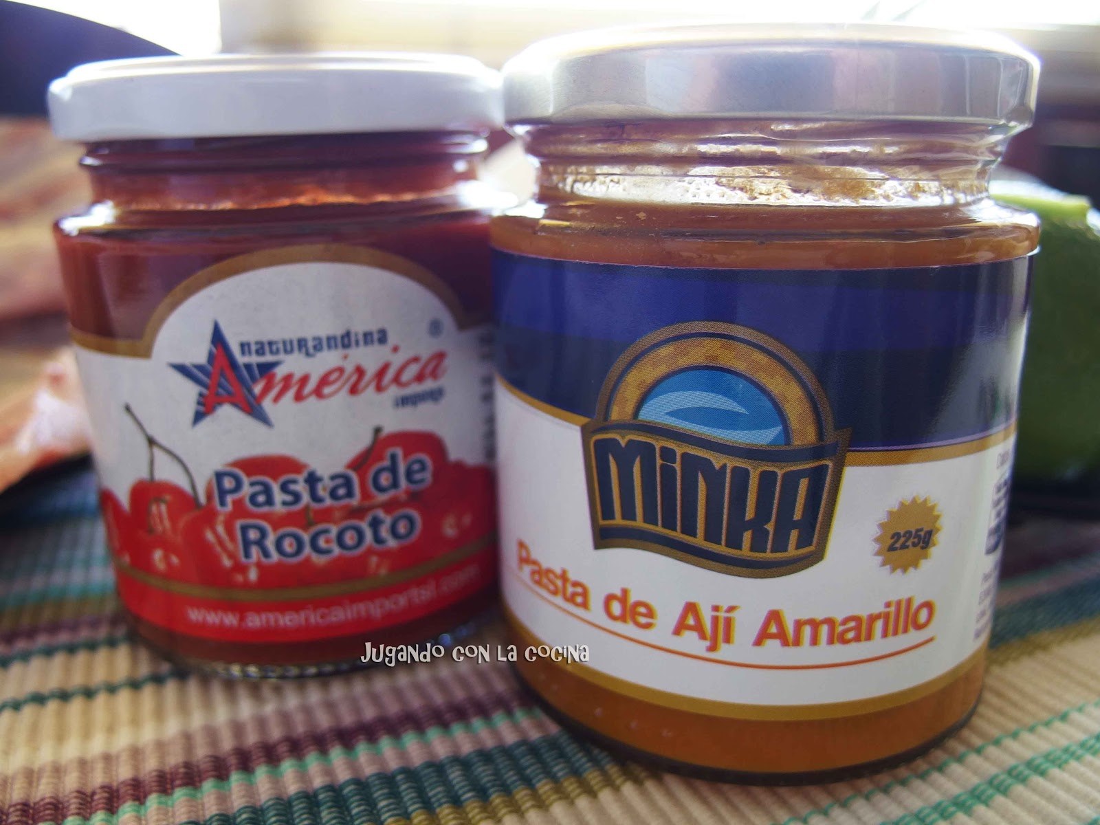 Los ajís amarillos naturales no los conseguí, pero sí la pasta que venden en frascos, que por cierto pica aún más que los naturales pero es una buena solución. Recomiendo que seáis prudentes con las cantidades de pimiento y sobretodo de la pasta de ambos pimientos, a no ser que querais tener la boca dormida un buen rato.