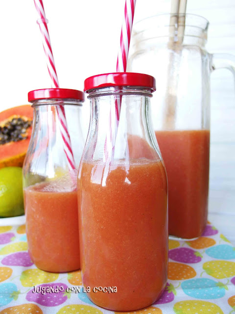 No se me ocurre mejor combinación, tanto de la papaya como de la piña se hablan maravillas, lástima que aquí sean tan caras por venir de importación, pero las como siempre que puedo. Combinadas con ese toque cítrico y el jengibre, tiene que ser una bomba detox para el cuerpo en ayunas, delicioso y super sano!!