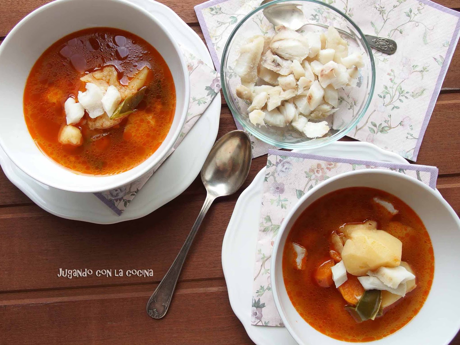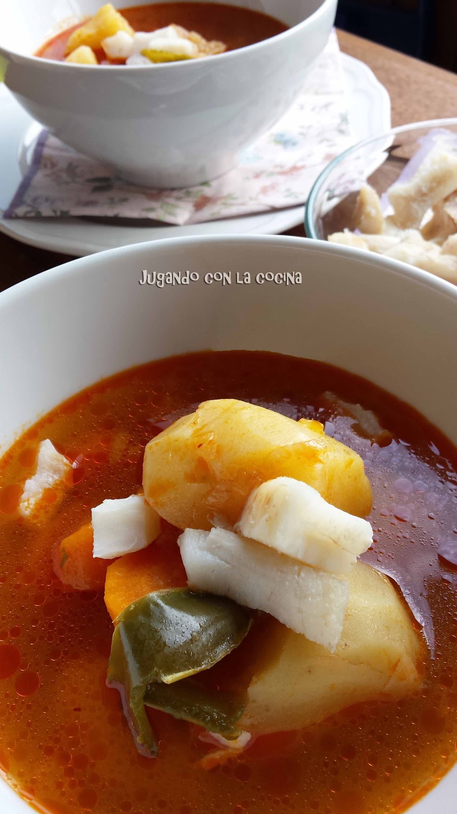 En esta ocasión use bacalao e hice las patatas en la olla express por una simple cuestión de tiempo, se puede hacer perfectamente en una cazuela u olla normal.