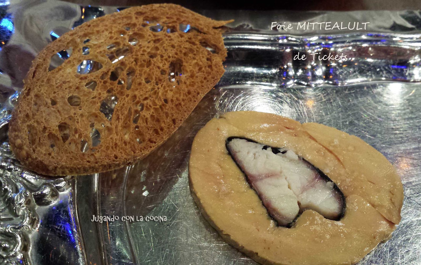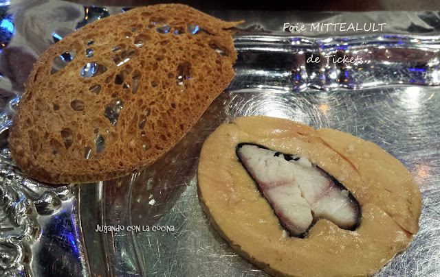Cocinado al carbón, el foie con anguila ahumada en el centro y sal de Guerand, servido con unas rebanadas finas de pan crujiente,