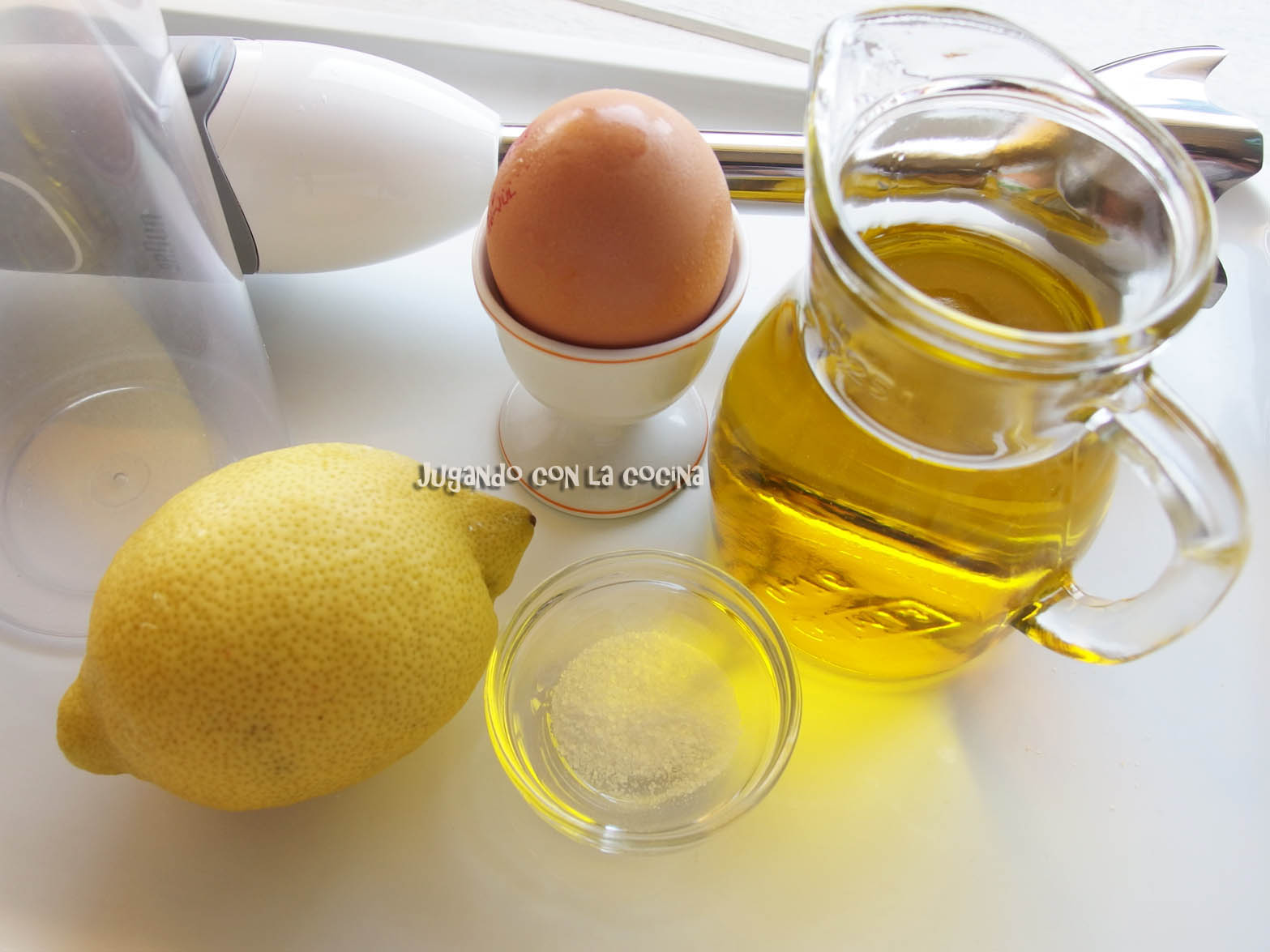 En el vaso de la batidora poner primero el huevo, añadir el aceite, la sal y unas gotas de limón.