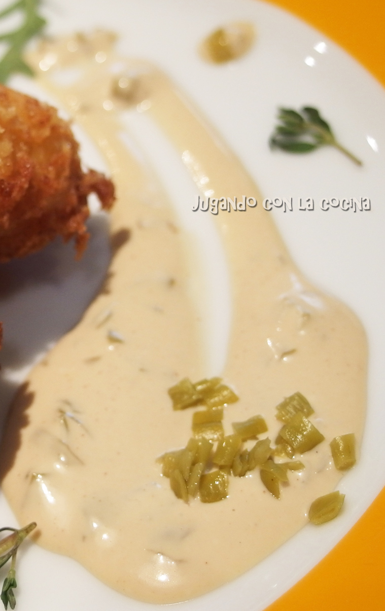 Esta mayonesa combina de maravilla con pescados y como ejemplo al final del post os dejo el enlace de mi receta de Merluza rebozada en panko con huevas rojas de mujol y mayonesas de guindilla y wasabi. Por cierto que la Mayonesa de wasabi también la tenéis en el blog.
