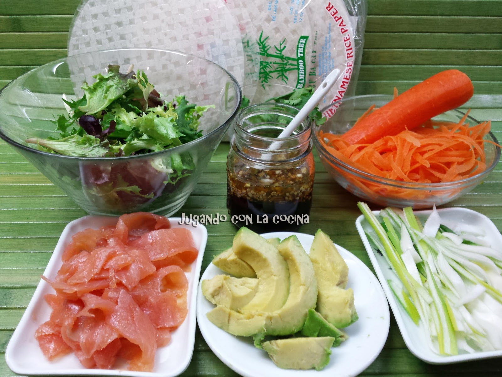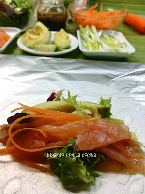 Comenzar por preparar y dejar a punto todos los elementos a ensamblar en el rollito.