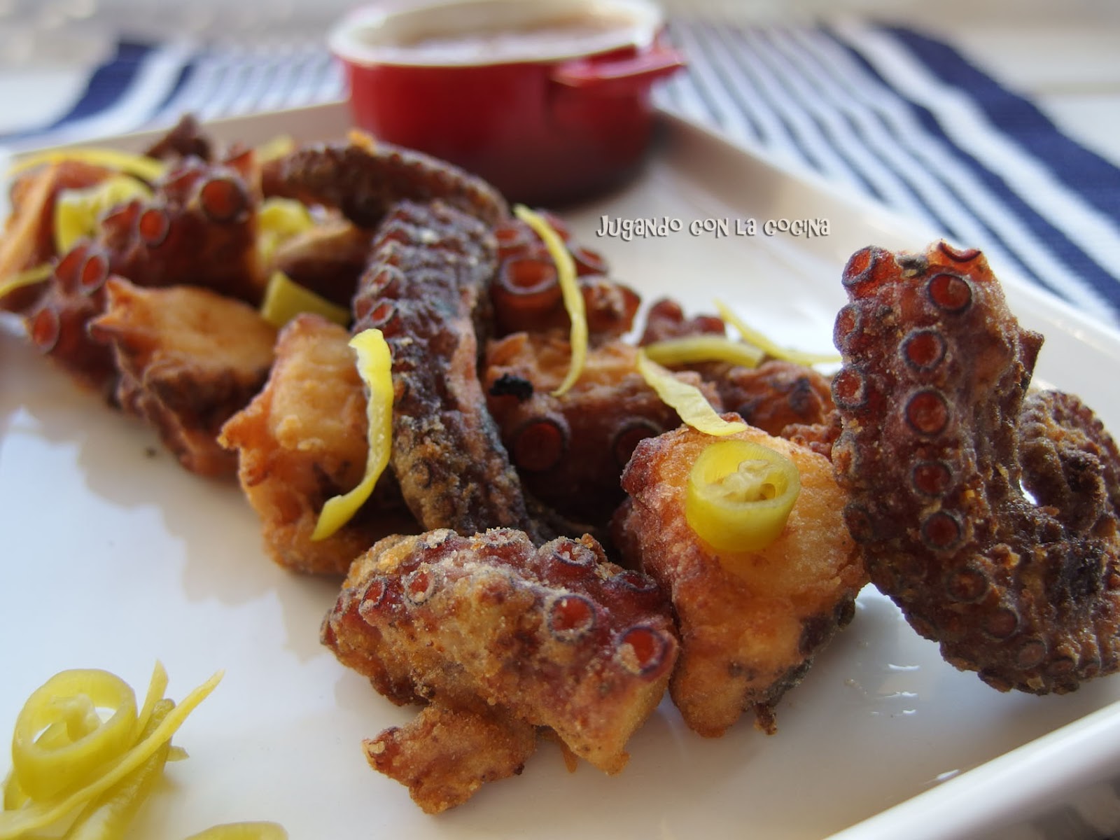 Pulpo frito o Chicharrones de pulpo con mahonesa de kalamata