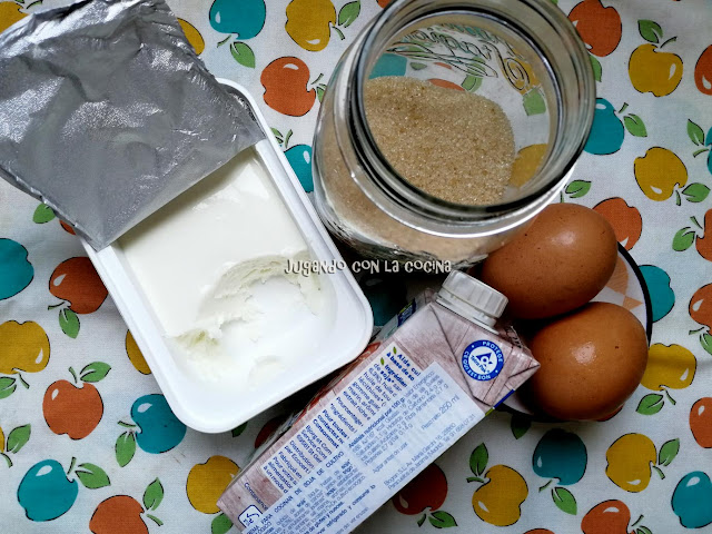 Por otro lado, batimos los huevos con la crema vegetal o nata, el azúcar, el queso crema y el queso rallado que usaremos para potenciar el sabor ya que los quesos crema descremados suelen tener un gusto muy suave.