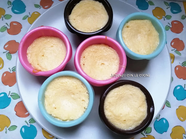 Vertemos esta mezcla en los moldes y los calentamos en el microondas durante 8-10 minutos a potencia 3 (unos 1000 watios).