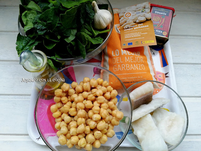 En este caso el bacalao le da un carácter delicioso a la preparación y elegir unos buenos garbanzos (hoy Garbanzo de Escacena) cocidos en casa y aprovechar el caldo de cocción es definitivo para que el guiso sea espectacular y sencillo a la vez. Como dato de interés os diré que con 500 gr. de garbanzos secos obtenemos aproximadamente 1.400 gr. una vez cocidos.