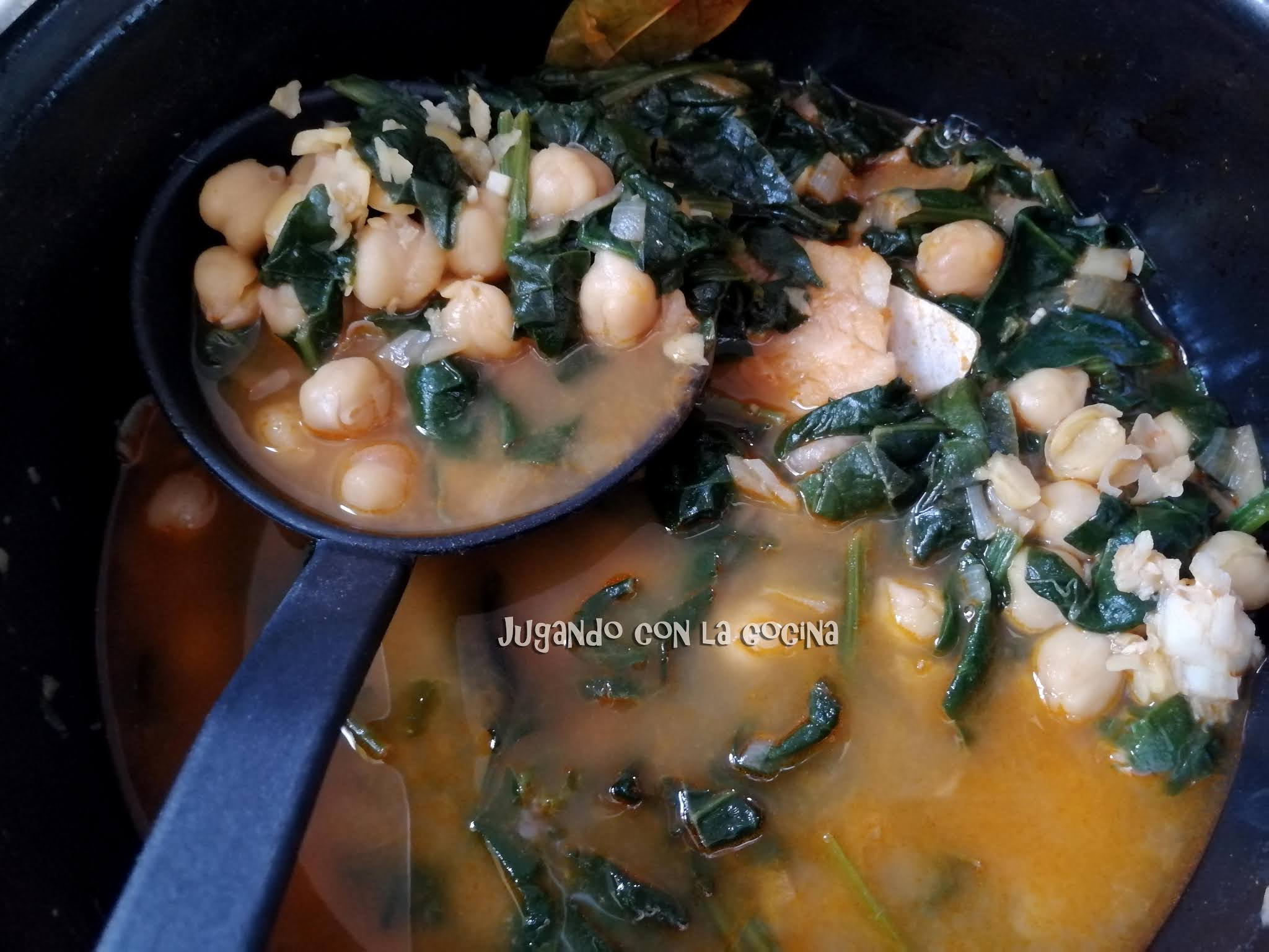 Dejamos cocinar hasta que las espinacas se ablanden y el guiso tenga un poco de consistencia, más o menos unos 10 minutos.