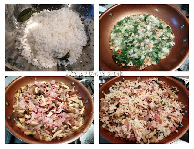 Como os decía al principio, los ingredientes de esta receta son básicamente el arroz blanco cocido y lo que queráis añadirle después para saltearlo, siempre da buen resultado pero esta combinación nos encantó, no dejéis de probarla.