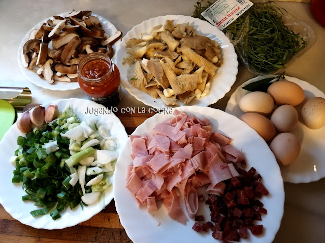 En este caso la nevera era ajena, ;-) porque se trataba de la despensa de mi cuñado en el pueblo. No os digo más, los ingredientes son sencillos pero la potencia de sabor que tiene un sofrito hecho con cebolletas recién arrancadas de la tierra, ajos procedentes del mismo lugar y tomate en conserva casero no tiene rival y si añadimos al final unos huevos de corral, de los de verdad, recién cogidos del campo donde corretean sus gallinas .... insuperable!!!