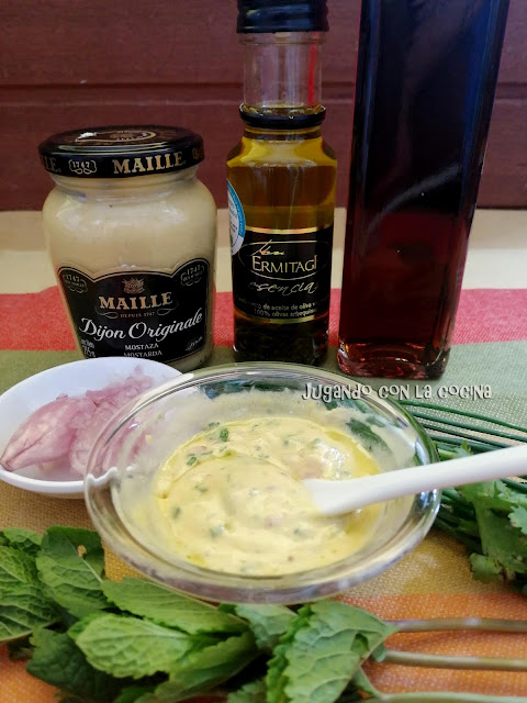 Esta vinagreta procede de la cocina francesa y es una adaptación del Chef David Lebovitz que tiene una forma de cocinar muy interesante y cercana como ya os explicamos en el post del 5 de julio cuando lo descubrimos gracias al reto de Cooking The Chef y cocinamos su receta de Ensalada de pollo con mango, utilizando esta vinagreta como aderezo.