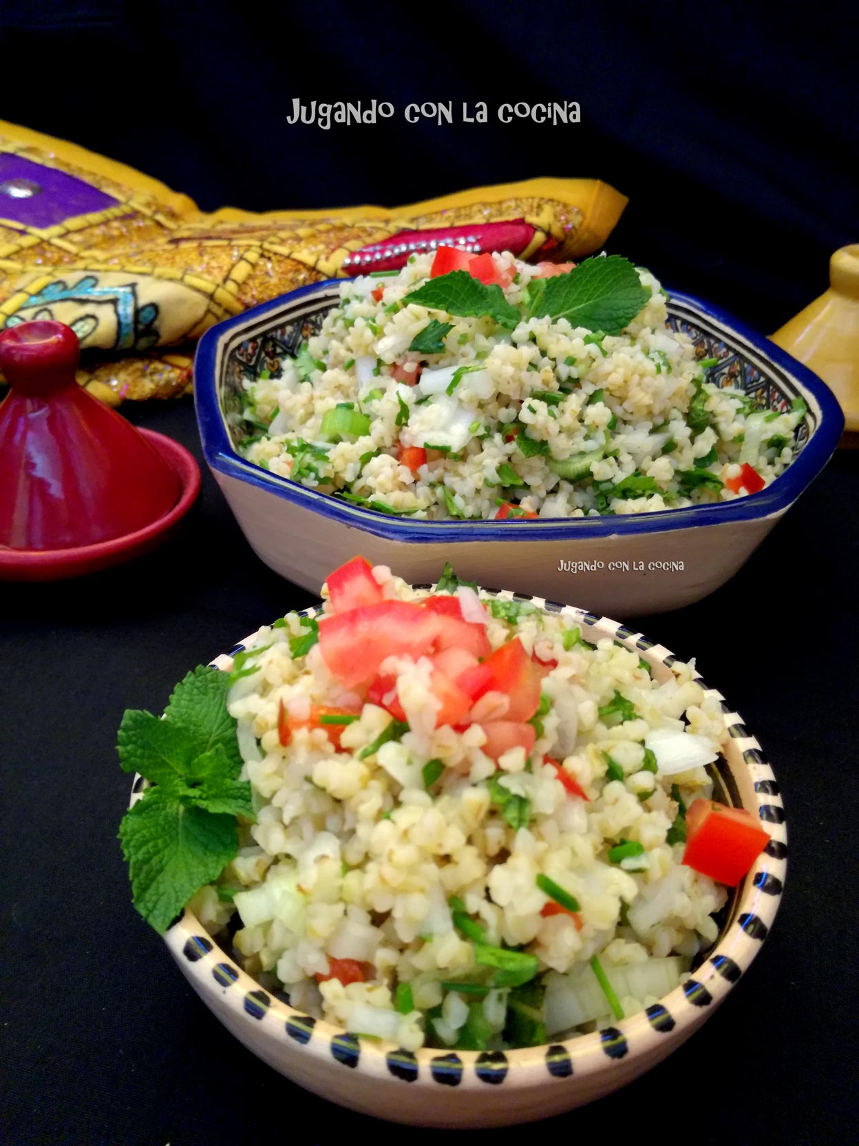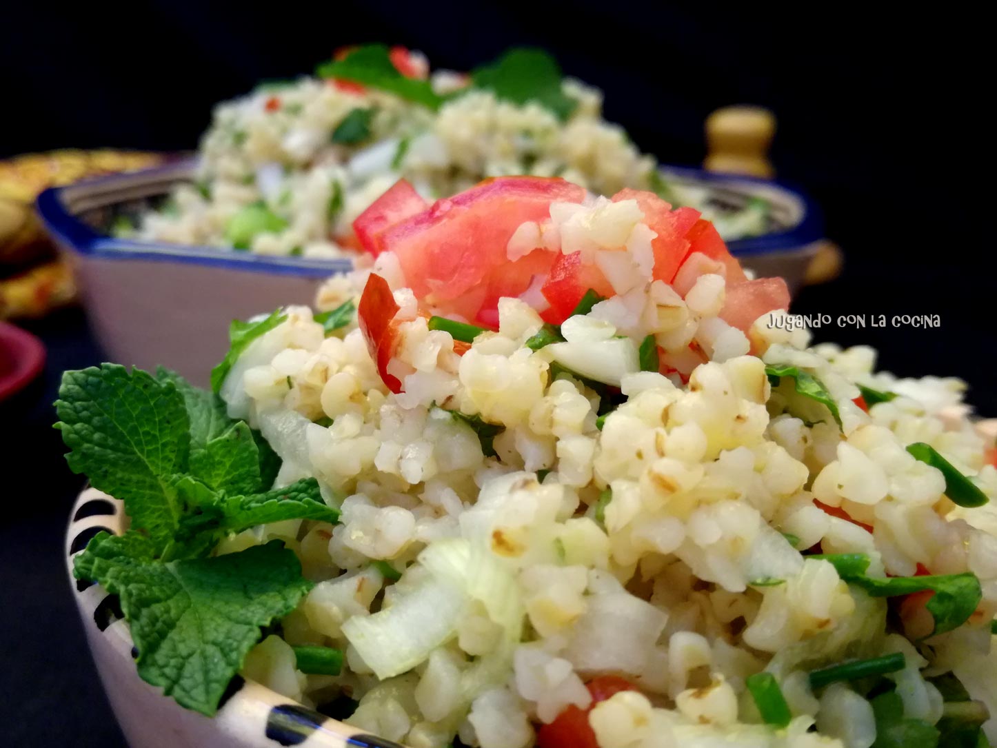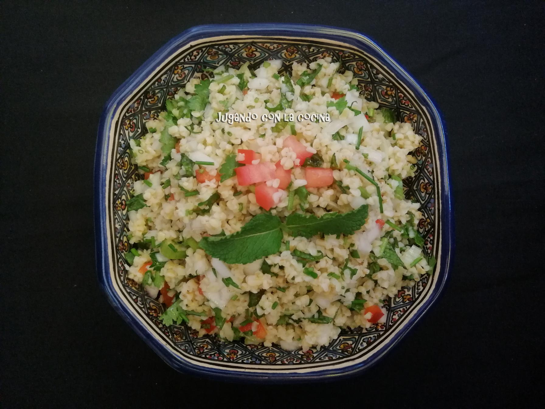 El bulgur es el ingrediente base de esta ensalada y aunque no se encuentre de forma habitual en nuestros pequeños mercados, si es frecuente verlo en supermercados, granerías y comercios especializados, por lo que os recomendamos que lo busquéis porque la textura de este derivado del trigo es la usada en el auténtico taboulé.